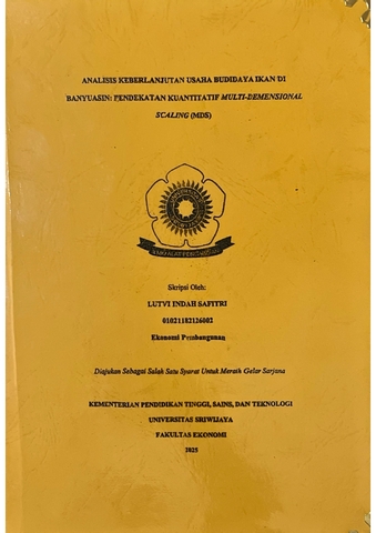 SAFITRI, LUTVI INDAH and Apriani, Deassy (2025) ANALISIS KEBERLANJUTAN USAHA BUDIDAYA IKAN DI BANYUASIN: PENDEKATAN KUANTITATIF MULTI-DEMENSIONAL SCALING (MDS). Undergraduate thesis, Sriwijaya University.