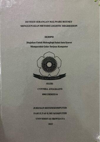 ANGGRAENI, CYNTHIA and Stiawan, Deris and Afifah, Nurul (2025) DETEKSI SERANGAN MALWARE BOTNET MENGGUNAKAN METODE LOGISTIC REGRESSION. Undergraduate thesis, Sriwijaya University.