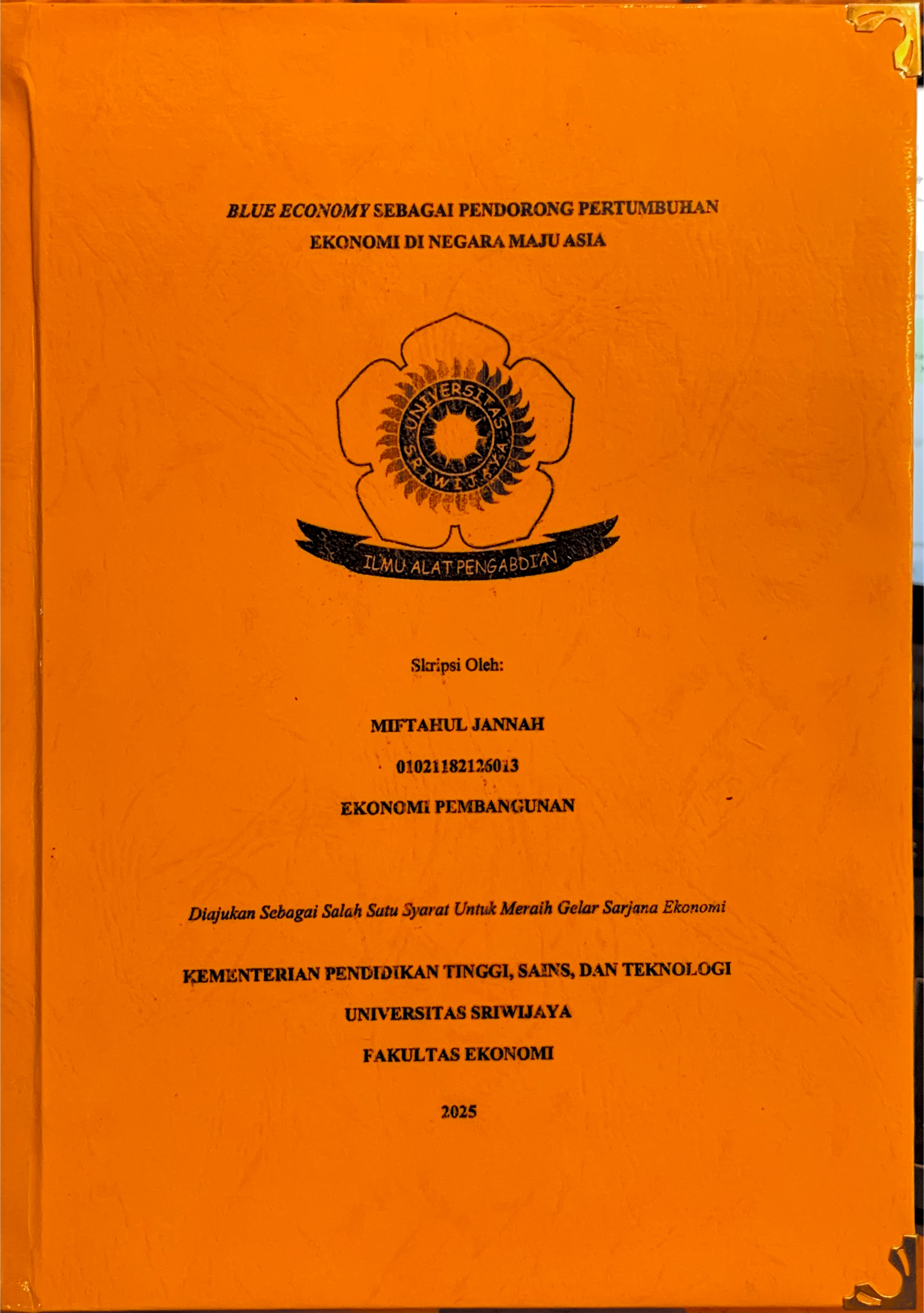 JANNAH, MIFTAHUL and Azwardi, Azwardi (2025) BLUE ECONOMY SEBAGAI PENDORONG PERTUMBUHAN EKONOMI DI NEGARA MAJU ASIA. Undergraduate thesis, Sriwijaya University.