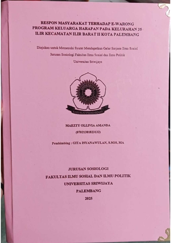 AMANDA, MAEZTY OLLIVIA and Isyanawulan, Gita (2025) RESPON MASYARAKAT TERHADAP E-WARONG PROGRAM KELUARGA HARAPAN PADA KELURAHAN 35 ILIR KECAMATAN ILIR BARAT II KOTA PALEMBANG. Undergraduate thesis, Sriwijaya University.
