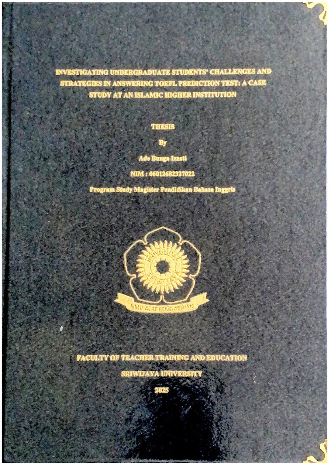 IZZATI, ADE BUNGA and Vianty, Machdalena and Eryansyah, Eryansyah (2025) INVESTIGATING UNDERGRADUATE STUDENTS’ CHALLENGES AND STRATEGIES IN ANSWERING TOEFL PREDICTION TEST: A CASE STUDY AT AN ISLAMIC HIGHER INSTITUTION. Masters thesis, Sriwijaya University.