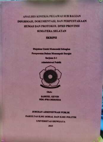 KEVIN, SAMUEL and Aryansah, Januar Eko (2025) ANALISIS KINERJA PEGAWAI SUB BAGIAN INFORMASI, DOKUMENTASI, DAN PERPUSTAKAAN HUMAS DAN PROTOKOL DPRD PROVINSI SUMATERA SELATAN. Undergraduate thesis, Sriwijaya University.
