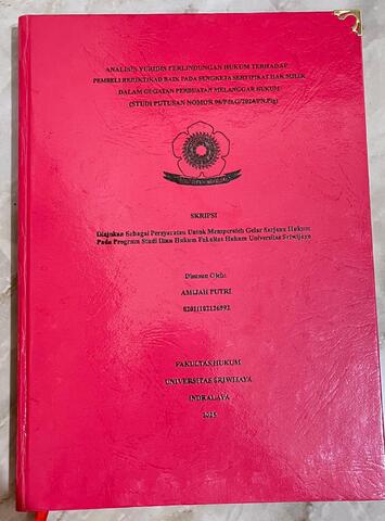 PUTRI, AMIJAH and Emirzon, Joni and Nugraha, Muslim (2025) ANALISIS YURIDIS PERLINDUNGAN HUKUM TERHADAP PEMBELI BERIKTIKAD BAIK PADA SENGKETA SERTIPIKAT HAK MILIK DALAM GUGATAN PERBUATAN MELANGGAR HUKUM (STUDI PUTUSAN NOMOR 96/Pdt.G/2024/PN.Plg). Undergraduate thesis, Sriwijaya University.