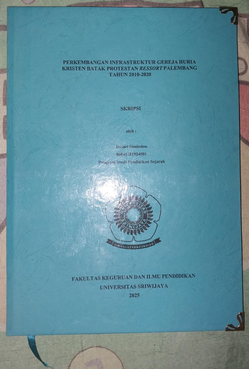 Simbolon, Itasari and Farida, Farida (2025) PERKEMBANGAN INFRASTRUKTUR GEREJA HURIA KRISTEN BATAK PROTESTAN RESSORT PALEMBANG TAHUN 2010-2020. Undergraduate thesis, Sriwijaya University.