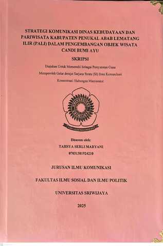 MARYANI, TAHSYA SERLI and Pratiwi, Miftha and Andarini, Rindang (2025) STRATEGI KOMUNIKASI DINAS KEBUDAYAAN DAN PARIWISATA KABUPATEN PENUKAL ABAB LEMATANG ILIR (PALI) DALAM PENGEMBANGAN OBJEK WISATA CANDI BUMI AYU. Undergraduate thesis, Sriwijaya University.