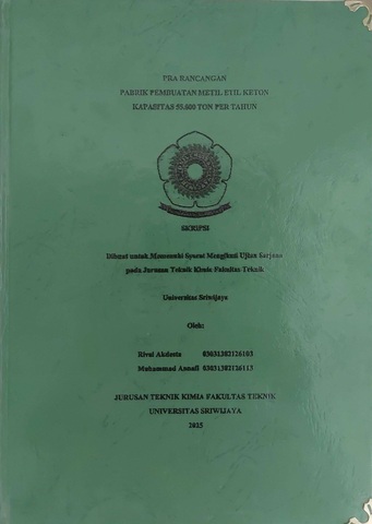 AKDESTA, RIVAL and ANNAFI, MUHAMMAD and Putri, Rizka Wulandari (2025) PRA RANCANGAN PABRIK PEMBUATAN METIL ETIL KETON KAPASITAS 55000 TON PER TAHUN. Undergraduate thesis, Sriwijaya University.