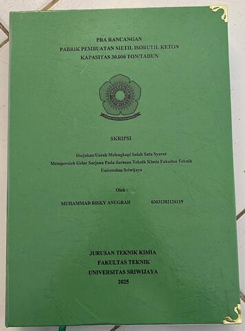 ANUGRAH, MUHAMMAD RISKY and Afrah, Bazlina Dawami (2025) PRA RANCANGAN PABRIK PEMBUATAN METIL ISOBUTIL KETON KAPASITAS 30.000 TON/TAHUN. Undergraduate thesis, Sriwijaya University.