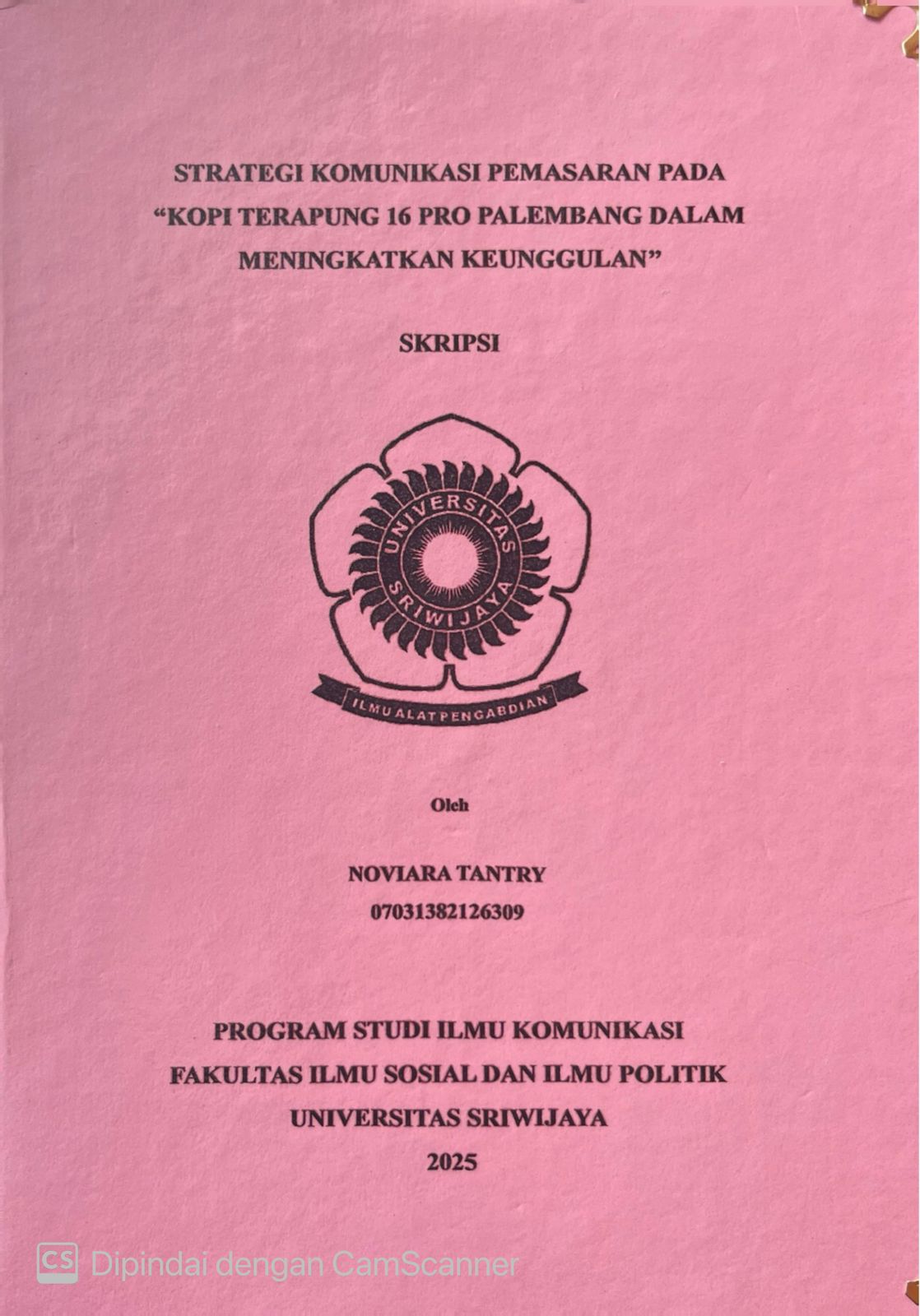 TANTRY, NOVIARA and Andarini, Rindang Senja and Astuti, Misni (2025) STRATEGI KOMUNIKASI PEMASARAN PADA “KOPI TERAPUNG 16 PRO PALEMBANG DALAM MENINGKATKAN KEUNGGULAN’’. Undergraduate thesis, Sriwijaya University.