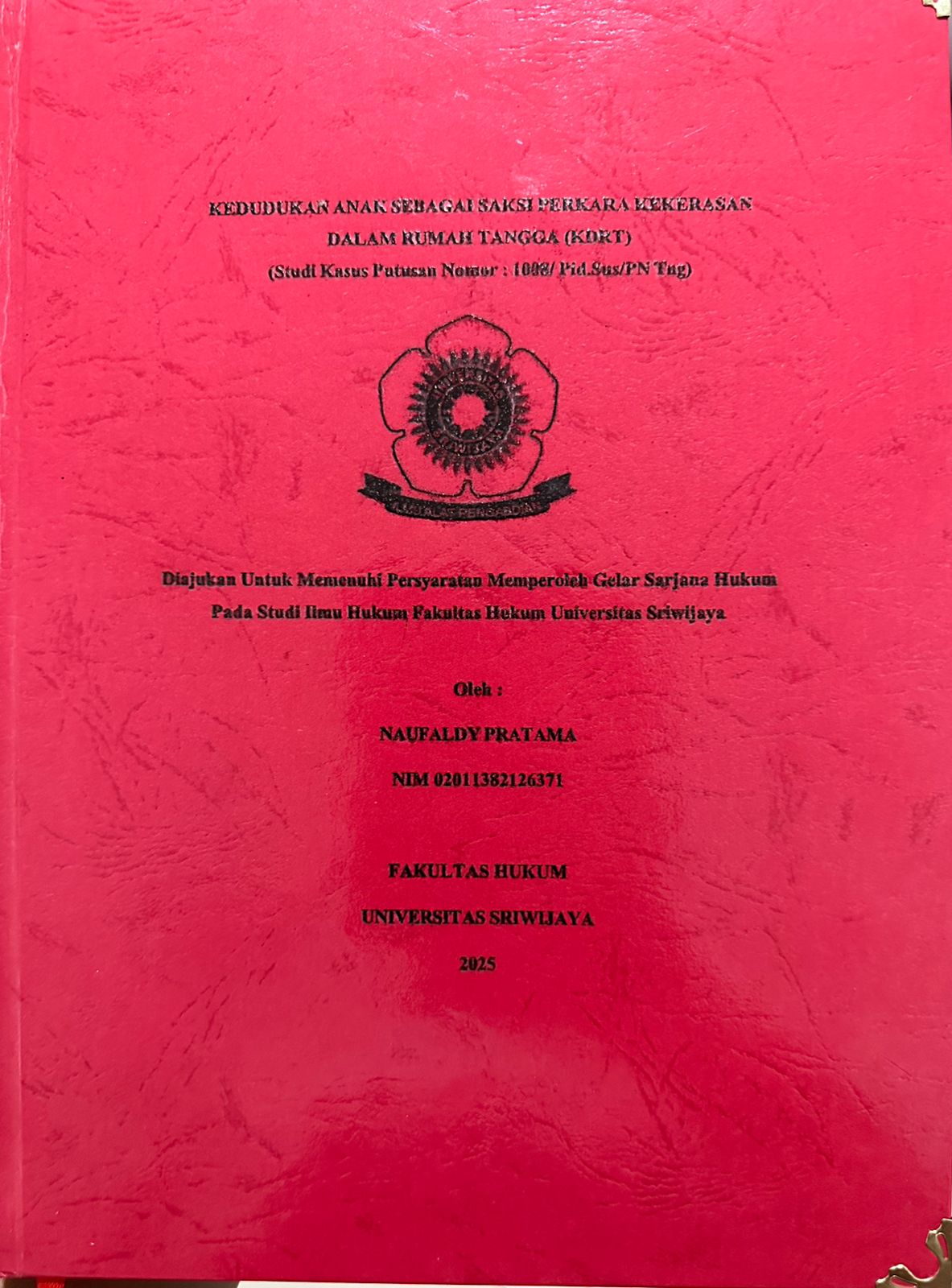 PRATAMA, NAUFALDY and Novianti, Vera and Zulaikha, Almira Novia (2025) KEDUDUKAN ANAK SEBAGAI SAKSI PERKARA KEKERASAN DALAM RUMAH TANGGA (KDRT) (Studi Kasus Putusan Nomor : 1008/ Pid.Sus/PN Tng). Undergraduate thesis, Sriwijaya University.