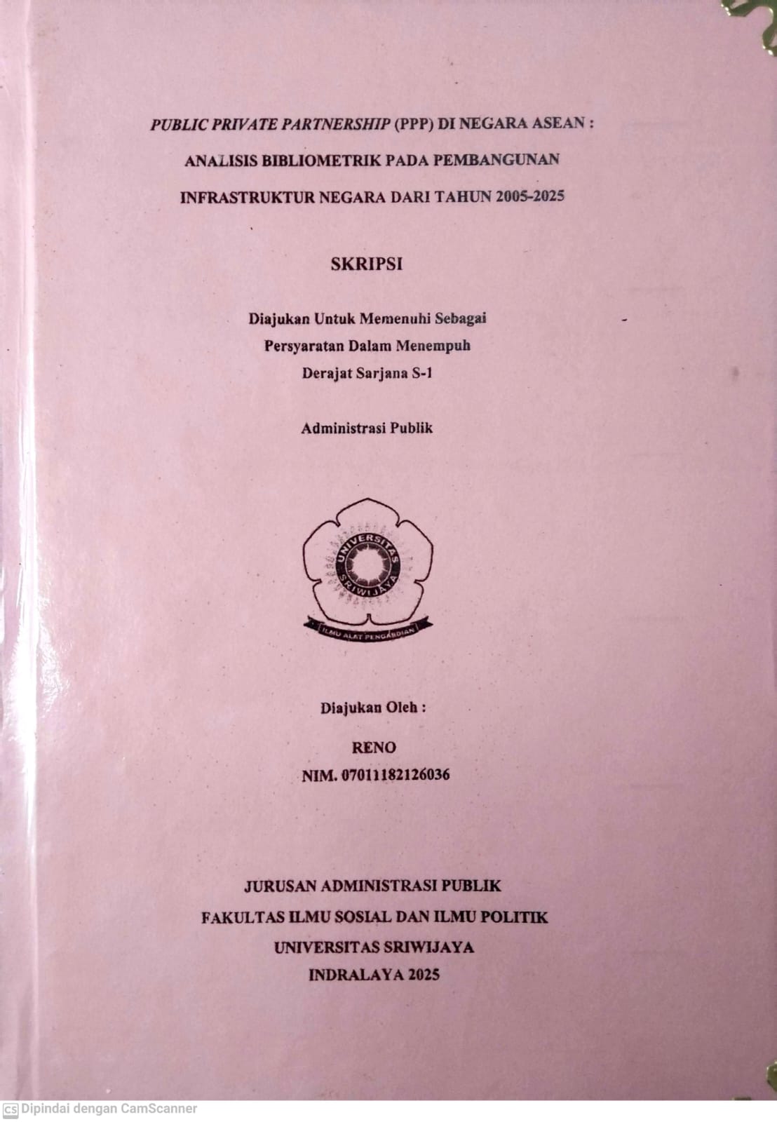 RENO, RENO and Putri, Aulia Utami (2025) PUBLIC PRIVATE PARTNERSHIP (PPP) DI NEGARA ASEAN : ANALISIS BIBLIOMETRIK PADA PEMBANGUNAN INFRASTRUKTUR NEGARA DARI TAHUN 2005-2025. Undergraduate thesis, Sriwijaya University.