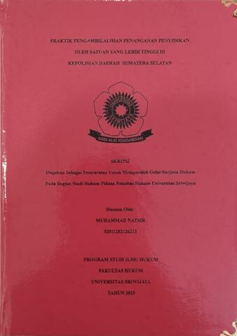 NATSIR, MUHAMMAD and Albariansyah, Hamonangan and Zulaikha, Almira Novia (2025) PRAKTIK PENGAMBILALIHAN PENANGANAN PENYIDIKAN OLEH SATUAN YANG LEBIH TINGGI DI KEPOLISIAN DAERAH SUMATERA SELATAN. Undergraduate thesis, Sriwijaya University.
