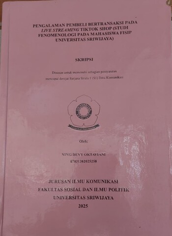 OKTAVIANI, NING DEVY and Mahriani, Retna and Ilham, Muhammad Hidayatul (2025) PENGALAMAN PEMBELI BERTRANSAKSI PADA LIVE STREAMING TIKTOK SHOP (STUDI FENOMENOLOGI PADA MAHASISWA FISIP UNIVERSITAS SRIWIJAYA). Undergraduate thesis, Sriwijaya University.