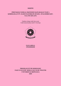 AMSYAL, IVANI and Kholek, Abdul (2025) PERUBAHAN SOSIAL EKONOMI MASYARAKAT PASCA KEBERADAAN PT. OASIS PALEMBANG DI KEL. SUKAMORO KEC. TALANG KELAPA. Undergraduate thesis, Sriwijaya University.