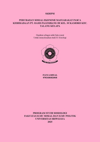 AMSYAL, IVANI and Kholek, Abdul (2025) PERUBAHAN SOSIAL EKONOMI MASYARAKAT PASCA KEBERADAAN PT. OASIS PALEMBANG DI KEL. SUKAMORO KEC. TALANG KELAPA. Undergraduate thesis, Sriwijaya University.