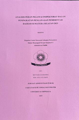 RAMANDA, MUTIARA and Andries, Lionardo (2025) ANALISIS PERAN PEGAWAI INSPEKTORAT DALAM PENINGKATAN PENGAWASAN PEMERINTAH DAERAH SUMATERA SELATAN 2025. Undergraduate thesis, Sriwijaya University.