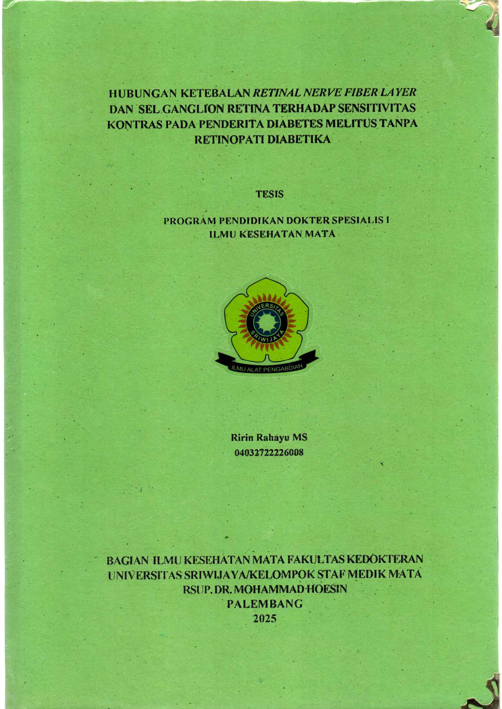 MS, RIRIN RAHAYU and Amin, Ramzi and Harahap, Debby Handayati (2025) HUBUNGAN KETEBALAN RETINALNERVE FIBER LAYER DAN SEL GANGLIONRETINATERHADAP SENSITIVITAS KONTRAS PADA PENDERITA DIABETES MELITUS TANPA RETINOPATI DIABETIKA. Masters thesis, Sriwijaya University.