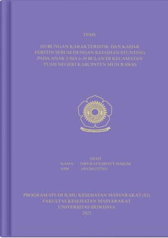 HAKIM, DWI RATNAWATY and Flora, Rostika and Rahmiwati, Anita (2025) HUBUNGAN KARAKTERISTIK DAN KADAR FERRITIN SERUM DENGAN KEJADIAN STUNTING PADA ANAK USIA 6-59 BULAN DI KECAMATAN TUAH NEGERI KABUPATEN MUSI RAWAS. Masters thesis, Sriwijaya University.