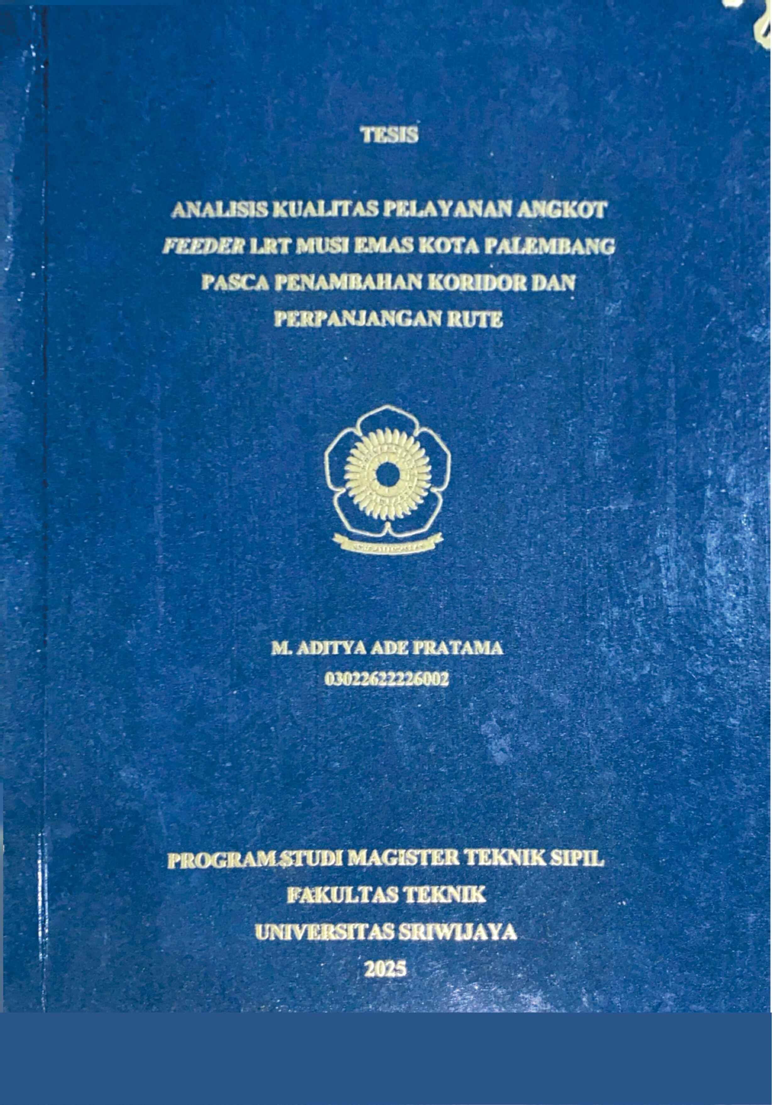 PRATAMA, M. ADITYA ADE and Kadarsa, Edi and Agustien, Melawaty (2025) ANALISIS KUALITAS PELAYANAN ANGKOT FEEDER LRT MUSI EMAS KOTA PALEMBANG PASCA PENAMBAHAN KORIDOR DAN PERPANJANGAN RUTE. Masters thesis, Sriwijaya University.
