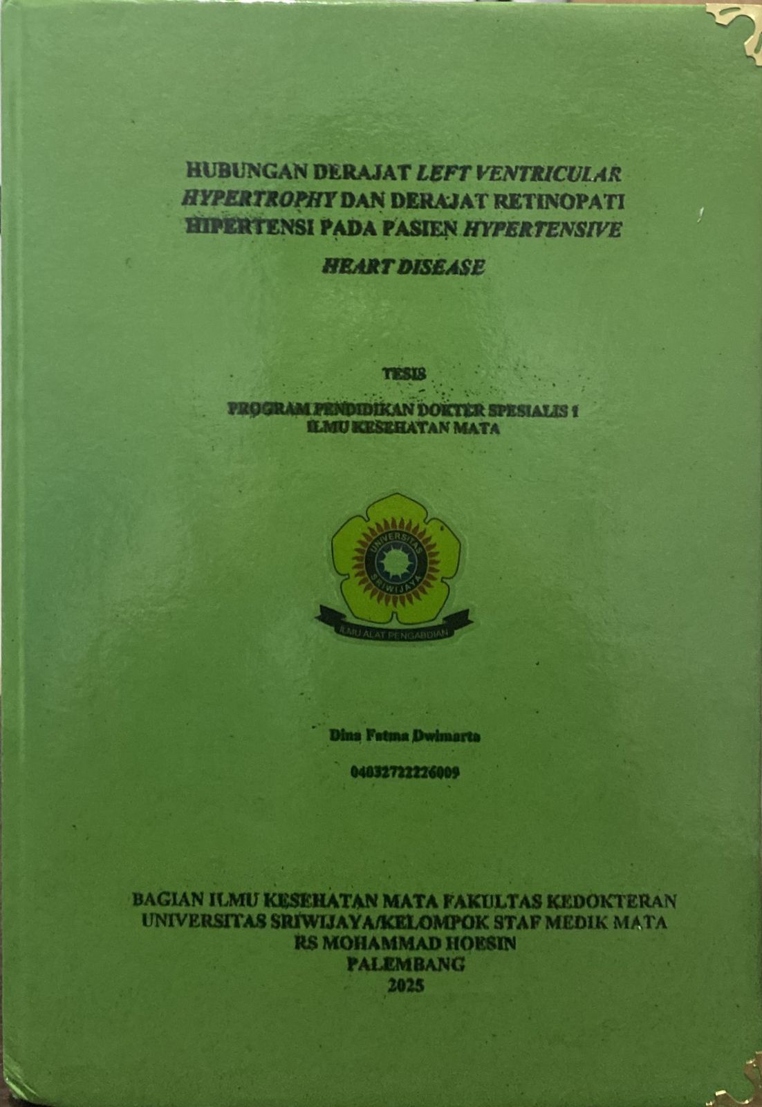 DWIMARTA, DINA FATMA and Amin, Ramzi and Sukandi, Erwin and Harahap, Debby Handayati (2025) HUBUNGAN DERAJAT LEFT VENTRICULAR HYPERTROPHY DAN DERAJAT RETINOPATI HIPERTENSI PADA PASIEN HYPERTENSIVE HEART DISEASE. Masters thesis, Sriwijaya University.