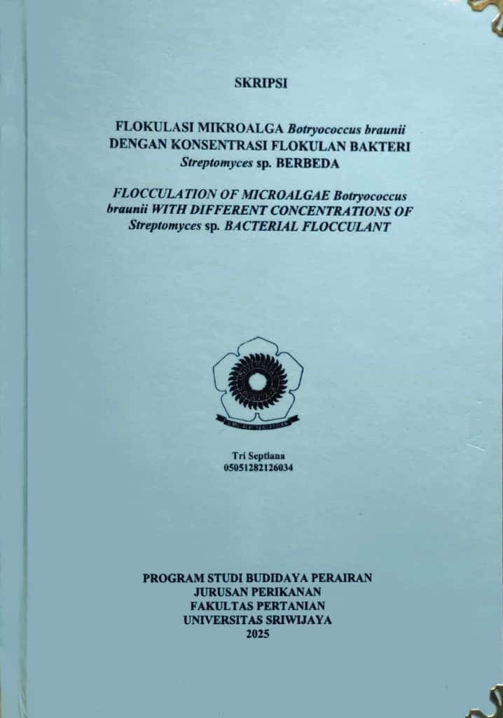 SEPTIANA, TRI and Wijayanti, Marini (2025) FLOKULASI MIKROALGA BOTRYOCOCCUS BRAUNII DENGAN KONSENTRASI FLOKULAN BAKTERI STREPTOMYCES SP. BERBEDA. Undergraduate thesis, Sriwijaya University.