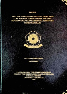 POHAN, GITA ELIYA TIFFANI and Arief, Taufik and Purbasari, Diana (2025) ANALISIS PENGGUNAAN CUTTING TOOLS PADA ALAT WIRTGEN SURFACE MINER 2200 DI PT. PEMBANGUNAN SARANA PERKASA JOBSITE PT. SEMEN BATURAJA. Undergraduate thesis, Sriwijaya University.