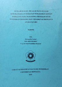 LESTARI, BINTANG DWI and Firmansyah, Firmansyah (2025) PENGARUH HASIL BELAJAR MATA KULIAH KEWIRAUSAHAAN TERHADAP PEMAHAMAN KONSEP MARKETING PADA MAHASISWA PROGRAM STUDI PENDIDIKAN EKONOMI FKIP UNIVERSITAS SRIWIJAYA ANGKATAN 2021. Undergraduate thesis, Sriwijaya University.