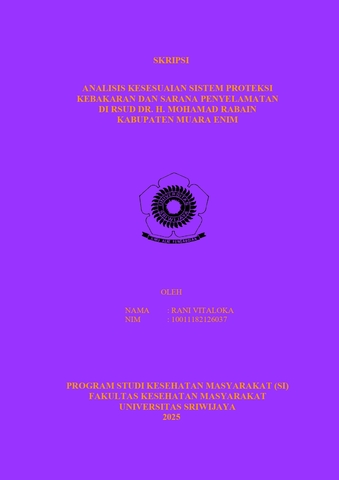 VITALOKA, RANI and Fujianti, Poppy (2025) ANALISIS KESESUAIAN SISTEM PROTEKSI KEBAKARAN DAN SARANA PENYELAMATAN DI RSUD DR. H. MOHAMAD RABAIN KABUPATEN MUARA ENIM. Undergraduate thesis, Sriwijaya University.