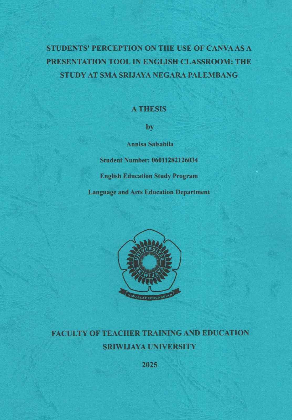 SALSABILA, ANNISA and Amrullah, Amrullah (2025) STUDENTS' PERCEPTION ON THE USE OF CANVA AS A PRESENTATION TOOL IN ENGLISH CLASSROOM: THE STUDY AT SMA SRIJAYA NEGARA PALEMBANG. Undergraduate thesis, Sriwijaya University.