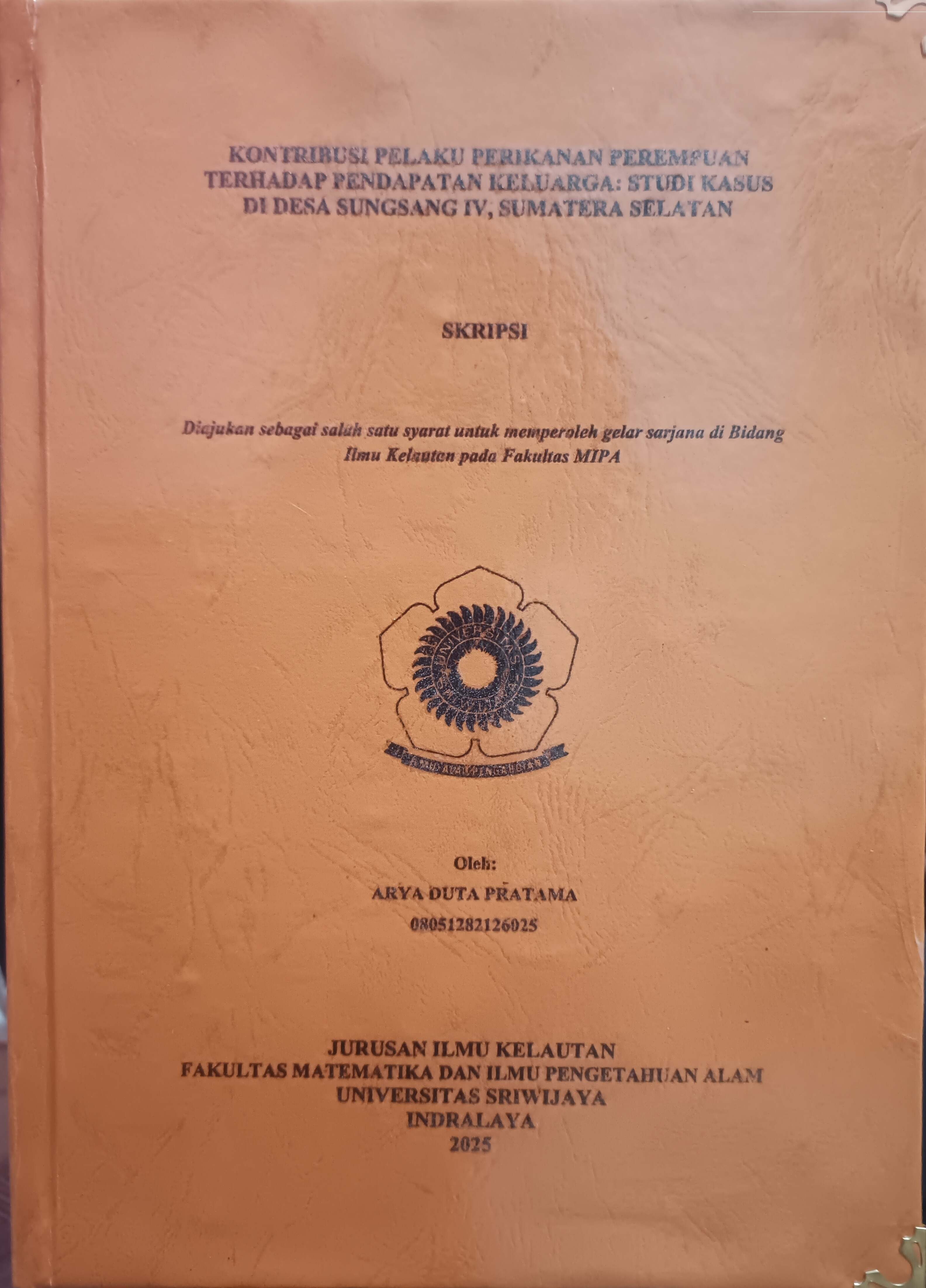 PRATAMA, ARYA DUTA and Ningsih, Ellis Nurjuliasti and Fauziyah, Fauziyah (2025) KONTRIBUSI PELAKU PERIKANAN PEREMPUAN TERHADAP PENDAPATAN KELUARGA: STUDI KASUS DI DESA SUNGSANG IV, SUMATERA SELATAN. Undergraduate thesis, Sriwijaya University.